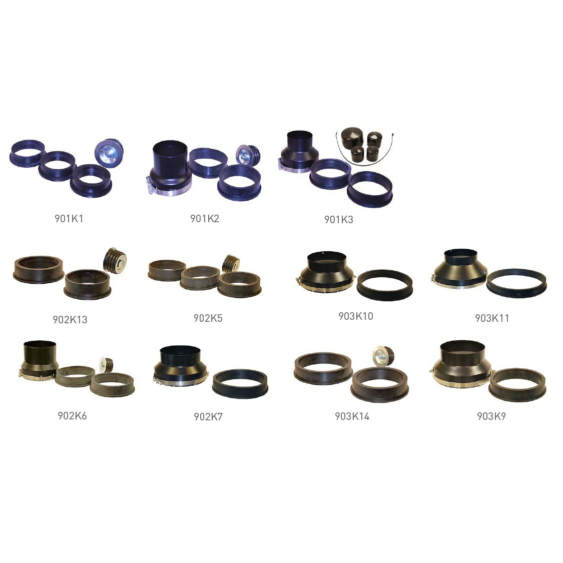 Sisältää tarvittavat sovitusvälineet, joilla esipuhdistin voidaan liittää kaikkiin tyypillisiin putkikokoihin.Saatavilla myös paljon muita adaptereita - kysy lisätietoja!