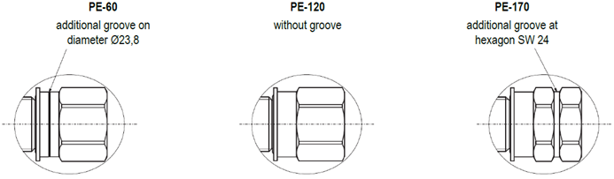 Kiinteän tuoton pumppuelementtivaihtoehdot ovat 60 mm3/isku, 120 mm3/isku ja 170 mm3/isku. Tunnistat nämä vaihtoehdot eri urista pumppuelementin juuressa, katso kuva.